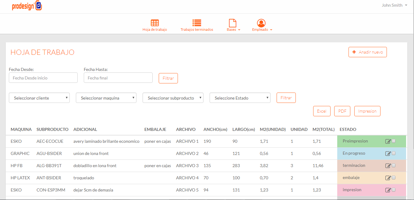 Sistema para la gestión de trabajos de la imprenta.