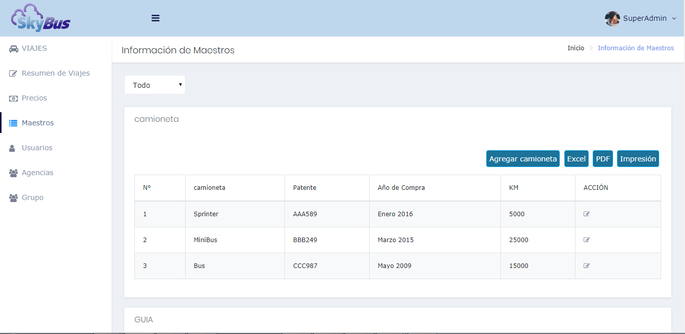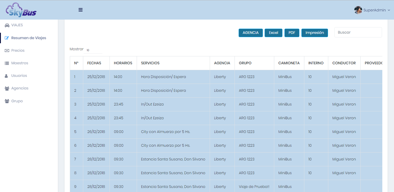 Sistema para la administración de viajes de Turismo.